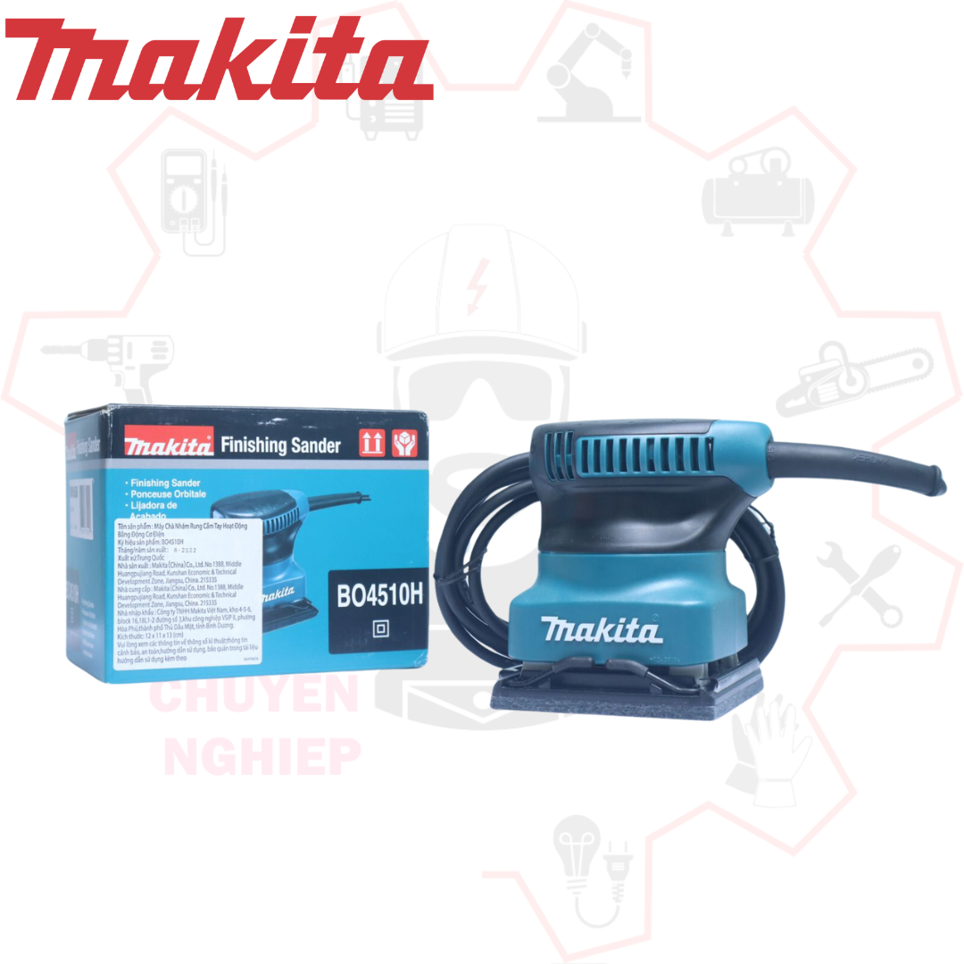 Máy chà nhám rung Makita BO4510H là một dụng cụ cầm tay chuyên dụng được thiết kế để đáp ứng nhu cầu chà nhám, làm bóng các bề mặt gỗ, kim loại và nhựa trong gia đình và xưởng thủ công. Sản phẩm được sản xuất bởi Makita – thương hiệu uy tín hàng đầu Nhật Bản – nổi tiếng với độ bền bỉ, hiệu suất cao và khả năng vận hành êm ái.