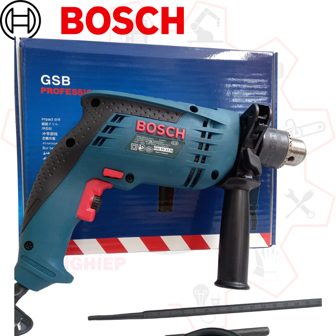 Máy khoan Bosch GSB 13 RE được sản xuất bởi Bosch – thương hiệu hàng đầu trong lĩnh vực dụng cụ điện cầm tay, đảm bảo chất lượng và hiệu quả hoạt động vượt trội. Sản phẩm sở hữu những ưu điểm nổi bật sau:
