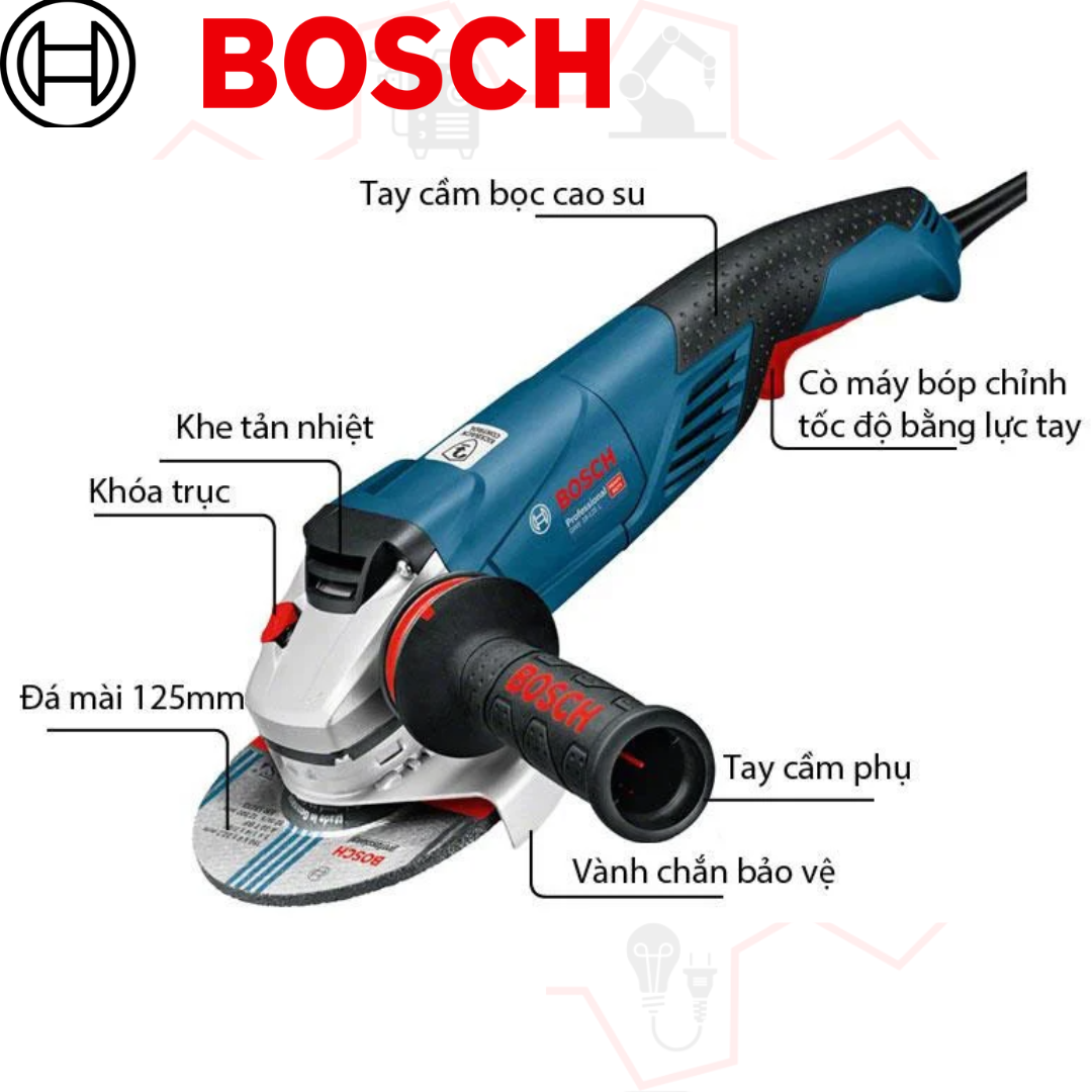 - Trang bị động cơ mạnh mẽ 1800W, tốc độ không tải lên đến 12.000 vòng/phút, Máy mài góc Bosch GWS 18-125SPL mang đến hiệu suất làm việc ấn tượng, đáp ứng nhu cầu gia công exigentes nhất.